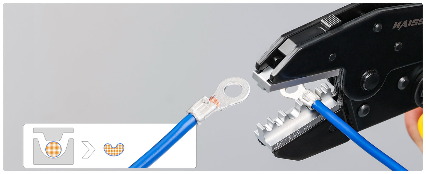 Designed for non-insulated lugs, this die forms tight electrical crimp terminals that grip the conductor from every side. The electric crimp tool focuses force for secure wire crimp connectors, avoiding cuts or damage common with basic crimp on connectors. Electricians can rely on this electrician crimping tool for ring crimps, splices, and other crimp terminal connector styles in control panels. Compared with simple crimp on butt connectors, the dedicated crimpers electrical profile delivers higher pull-out strength and long-term reliability.
