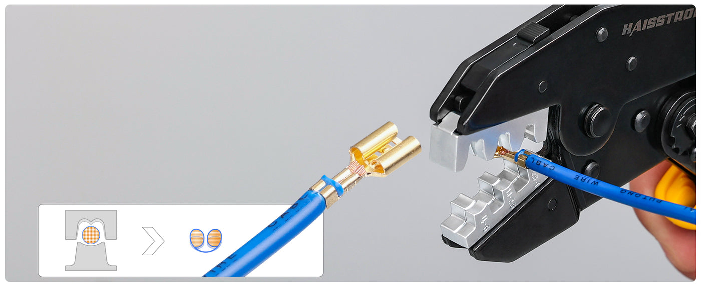 haisstronica’s 6-in-1 multi-function crimping tool kit is built to replace a whole drawer of hand crimpers in one compact system. With six interchangeable dies, this ratchet crimper switches from heat-shrink 22–10 AWG to insulated 22–10 AWG, non-insulated 22–8 AWG, open-barrel 20–10 AWG, ferrules 24–8 AWG, and 14–10 AWG female/male terminals & solar connectors in seconds. Instead of guessing which crimpers tool you need for each job, this single terminal crimping tool lets you crimp metal on lugs, spade ends, and wire crimping terminals with a consistent, professional finish—no more hunting “crimps near me” or relying on random walmart crimpers.